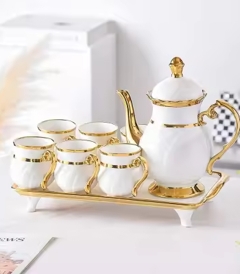 Imported Ceramics 9pcs Tea Set with Golden Border - Porcelain